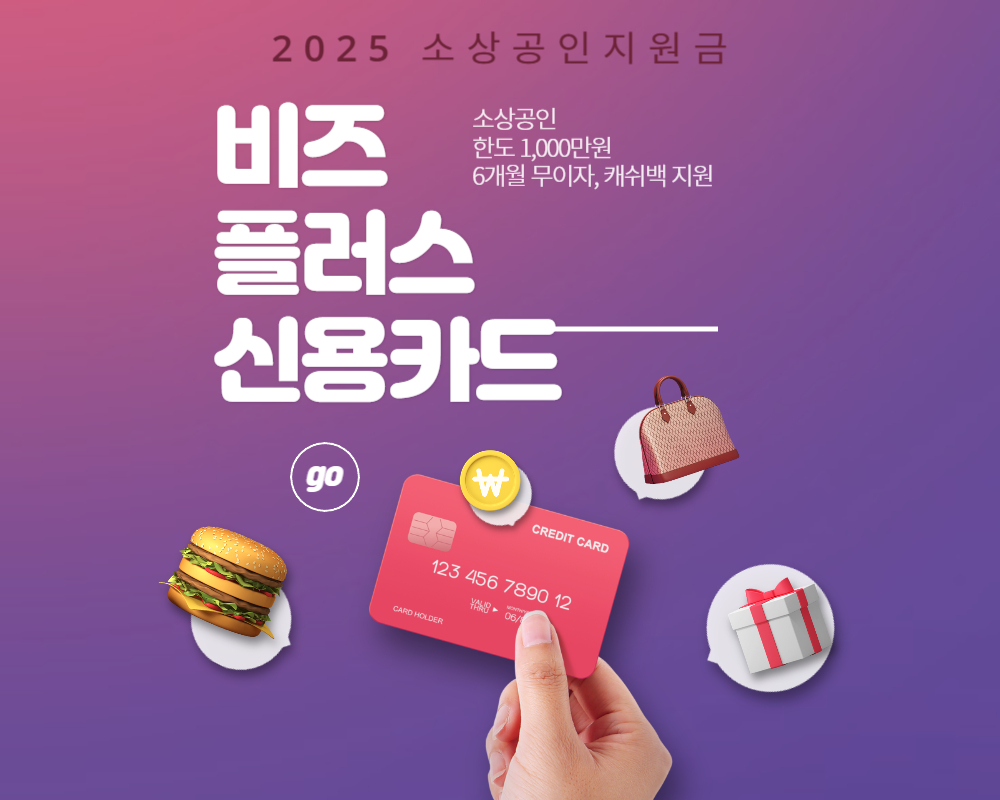 그 중에서도 비즈플러스카드 지원사업은 신용이 부족하거나 기존 금융 이용에 어려움을 겪었던 소상공인들에게 신용카드 한도 1,000만원을 보장해 주는 특별한 사업이라 더욱 화제랍니다!
