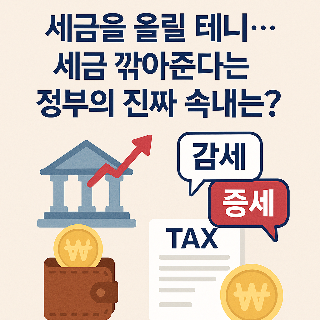 요즘 정부가 자꾸 "세금을 깎아준다"는 말, 많이 들려오지 않으세요?근데 속 사정을 들여다보면... 진짜 깎아주는 게 맞는 걸까요? 🤔결론부터 말씀드리면, '깎아주는 척하면서 결국은 올리려는' 움직임이 보인다는 게 포인트예요! 법인세 인하? 동시에 ‘주식 양도세 확대’?먼저 정부는 최근 ‘법인세를 낮춰 기업 부담을 줄인다’는 입장을 여러 차례 밝혔어요.이 말만 들으면 ‘와, 세금 줄어드는 거 아냐?’ 하고 생각할 수 있는데요,문제는 동시에 “주식 양도차익 과세 확대”, “부동산 보유세 강화”,그리고 “부자 증세” 같은 키워드가 등장하고 있다는 점이에요. 😮특히 고소득 근로자나 프리랜서, 주식 투자자들에겐 더 높은 세금 부담이 예고되어 있거든요.즉, ‘기업은 깎아주고, 개인은 더 걷는’ 구조로 바뀔 수..